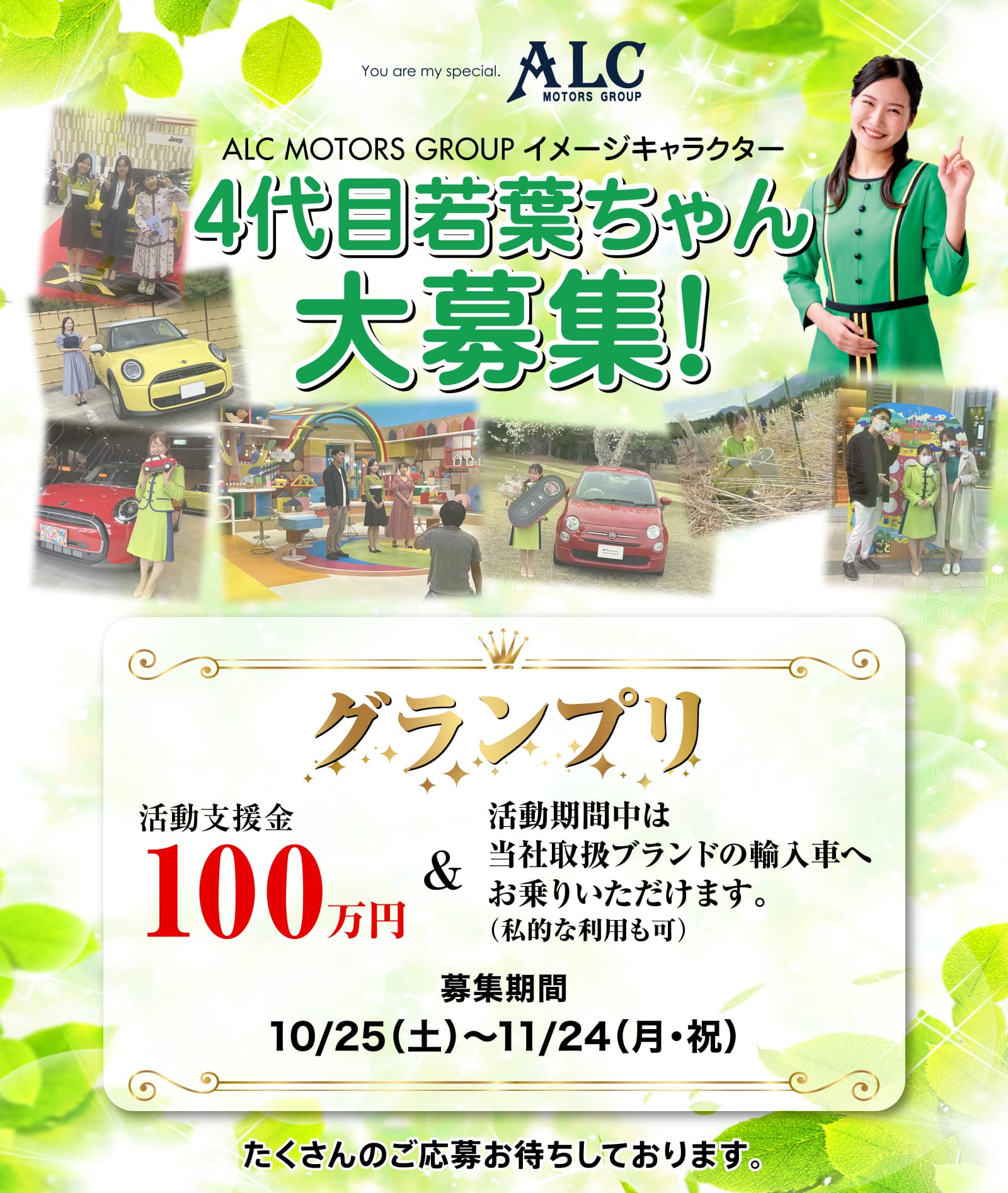 - グランプリ:活動支援金100万円 & 活動期間中は当社取扱ブランドの輸入車へお乗りいただけます。(私的利用も可)