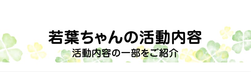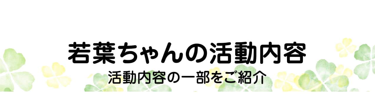 - 「若葉ちゃん」として約2年間、当社のイベントやあらゆるPR活動(TV/ラジオ/WEB/その他媒体)に参加・出演・活動可能な方